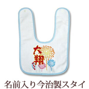 【即納 翌営業日出荷】 出産祝い 名入れ スタイ 赤ちゃんに優しい今治タオル生地 日本製 名前入り よだれかけ ビブ お食事エプロン 筆文字 和柄 和風 デザイン 花火 男の子 ベビー 新生児 ブランド ココロコ