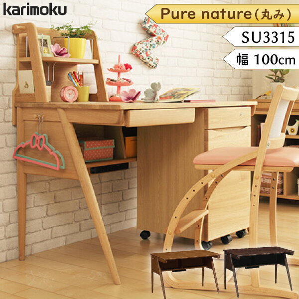 カリモク カリモク家具 SU3315 SU3315ME SU3315MH SU3315MK Pure nature 幅100cm デスク 木製 天然木 ムク材 日本製 国産 正規品 karimoku 学習デスク 収納棚 コンセント付き シンプル 北欧風 Kライン脚 学習机 丸みタイプ ピュアナチュール