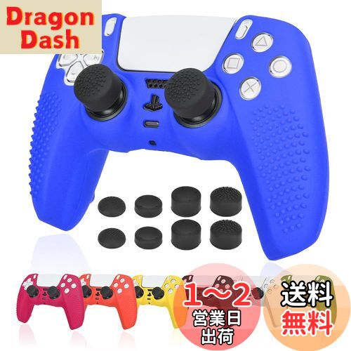 【送料無料】Ltenic ps5 コントローラー カバー シリコン素材 ps5 カバー コントローラー 滑り止め 簡単装着 超軽量 耐衝撃 傷つけ防止 保護ケース-ブルー(スティックキャップ 8個付)