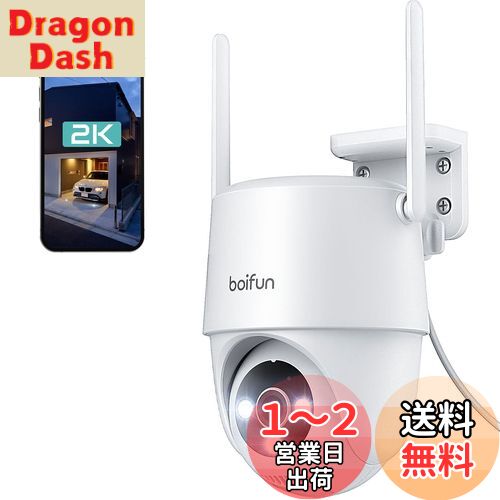 商品情報商品の説明主な仕様 ?【2K 300万超高画素・360°全方位監視・PTZ回転】 BOIFUN 屋外防犯カメラは最先端のCMOSセンサーを採用し、2304×1296の超高画質を提供可能。1080p製品比べてみるとかなり映像が鮮明になり、PTZ首振り機能が搭載され、監視カメラはスマホで見られて簡単に操作できて水平(パン)355°垂直90°(チルト)回転でき、超広角と合わせて死角なく360°全方位周囲の状況を把握できます。br?【AI人体検知・動体検知・音光警報・可帰位自動追跡 】この監視カメラには最先端の人体検出(人体検出機能)と運動検出機能も搭載されており、人物や動物を検知する時だけ録画、携帯アプリで警報通知を受信します。光変化、枝やカーテンの揺れなどに対してほとんど反応しないので、 Micro SDカード容量を節約し、不要な誤警報を避けます。また、他の防犯カメラでは、固定式だと限られた範囲しか録画できません。 範囲に検知エリアを自由で特定の箇所のみを検知したい位置を指定して検知することができ、99%迷惑な誤警報を削減できます。また、自動追尾機能が付き、人を検知するとすぐに自動的に追跡します。br?【夜間カラー撮影&24時間常時録画・自動上書き機能】このワイヤレス 屋外防犯カメラは、赤外線とスポットライトを一体したLEDを搭載され、6000Kの白色光が点灯し、移動体が検出された場合、夜間に鮮明なカラー映像を撮影できます。また白黒モード/カラーモード/スマートモードを三つのナイトビジョンを選択できます。スムーズに画面が黒白からカラーまで切替が可能です。自動上書き機能も搭載し、microSDカードの容量(最大128GB対応)がいっぱいになるのを検知する時に、前のメモリは自動的にカバーし、24時間年中無休の録画は可能です。br?【双方向音声・家族共有・設置設定が簡単】この防犯カメラはスピーカー&マイクを内蔵し、外出先の時も不審者を威嚇し、遠くの家族との通話や訪問者の確認も可能です。家族多人数に防犯カメラを共有でき、外出先でもリアルタイムで視聴、録画再生出来ます。専用日本語アプリで多台カメラを一括管理できるし、4台のカメラ映像を1画面で同時に映ることも可能です。外出先からでもカメラの映像をいつでもどこでも見られます。br?【IP66防水・安全認証済み・2年間品質保証】屋外ワイヤレス防犯カメラは優れたIP66防水規格を取得、暴風雨や強風などの悪天候にも対応できます。BOIFUN防犯カメラは電気用品安全法(PSE)や電球法(TELEC)の技術基準証を取得済み(マーク番号:210-166310)ご安心に利用ください。BOIFUNは100%の高品質を追求し、ご購入より2年の保証を提供いたします。何がご質問とご要望がありましたら、お気軽に注文履歴の店より/公式アドレスまでご連絡お願いたします。今後も絶えず製品に対して改良して、お客様にもっと良い制品を提供することに力を尽くします!