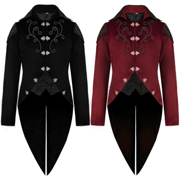 中世 貴族風 舞台 ジャケット 衣装 豪華 メンズ ノースリーブコートタキシード着 長袖 ロングクリスマス ハロウィン 演劇 ステージ ルネサンス クトリア パンク風 大きいサイズ 西洋 S M L XL 2XL 3XL 4XL ブラック レッドd9416c0c0t2