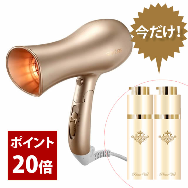 ★只今プライムヴェール 2本(24,200円相当)プレゼント!! ★只今フェアにつきCAP ナチュラルUVヴェール 1本(定価4,840円)もれなくプレゼント! ★ポイント20倍! 高性能温風(髪へのダメージ軽減)×赤外線(プラスイオン発生抑制、内部に熱が浸透。 ◆ヒートショックプロテイン(HSP)増大×マイナスイオン(抑静電気、パサつき軽減) SIVERS独自技術・ヒートショックプログラムとは? 細胞を構成している分子そのものを活性化させる技術で、髪だけでなく、頭皮や肌にも効果があります。 「ヒートショックプロテイン」のように、傷んだ細胞を修復するたんぱく質を活性化し、私たちの体をリフレッシュさせてくれます。 紫外線やストレスから細胞を守り、日焼けなどの炎症を抑え疲労や酸素、老化による弱ったコラーゲンを修復して、ハリのある健やかで美しいお肌を保ってくれます。 しかも、使い方は簡単で、SIVERS MAGICK から出る「赤外線」をあびるだけ!このあと冷風をあてるだけで、”美顔効果”があるという美顔器機能が付いています。 仕様 本体、ポーチ、取扱説明書、専用工具(吸気口カバー着脱用工具)、ノズル ◆使用方法 髪を乾かすとき 1.タオルで髪の水分を拭き取り、ブラシや手ぐしで髪のもつれを取る。 2.「HAIR H」モード(温風)を選ぶ。 3.髪全体に温風をあてる。 4.使用後は必ずモードを「OFF」にし、電源プラグをコンセントから抜く。 スキンケアするとき 1.「SKIN」モード(温風)を選ぶ。 2.光を直視しないように目を閉じ、全体に60秒程度あてる。 3.「COOL」ボタンで冷風に切り替える。 4.使用後は必ずモードを「OFF」にし、電源プラグをコンセントから抜く。 広告文責:株式会社OASIS東京(03-6454-2387)